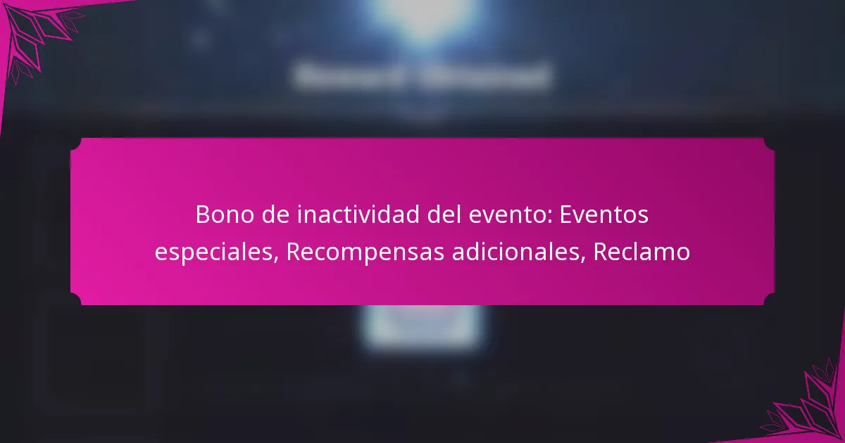 Bono de inactividad del evento: Eventos especiales, Recompensas adicionales, Reclamo